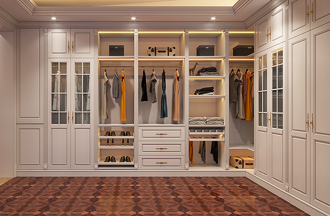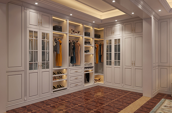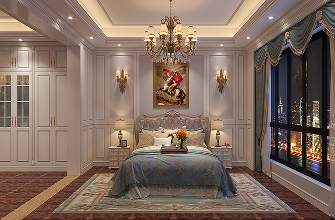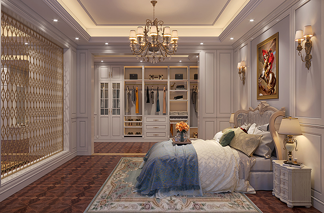 以藍(lán)色調(diào)為主色點(diǎn)的主臥顯得十分大方,男性色彩展現(xiàn)出的穩(wěn)重讓人十分心安。房間衣柜的設(shè)計(jì)獨(dú)特且富有現(xiàn)代設(shè)計(jì)感,不規(guī)則的設(shè)計(jì)方式讓功能區(qū)域分劃更加明確。居室里的空間一處都不可浪費(fèi),衣帽間的設(shè)計(jì)就要十分合理。這個(gè)衣帽間貼合空間,嵌入墻面而立,讓角落里的空間都得以利用。L型的設(shè)計(jì)非常便利,視野統(tǒng)一,在選取衣帽時(shí)不會(huì)顯得手忙腳亂。將梳妝臺(tái)也設(shè)計(jì)在衣帽間,充分節(jié)省了空間,一物多用并且五臟俱全。