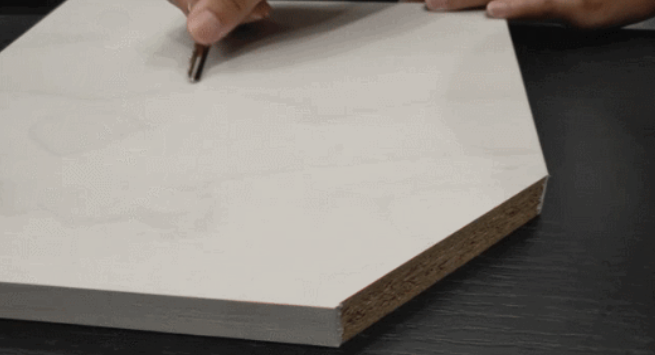在竹香板和顆粒板的側(cè)面分別滴上一滴水,然后湊近樣品閉眼感受它們散發(fā)的氣味。此時你會發(fā)現(xiàn),顆粒板木味混雜,略顯刺鼻,而竹香板則自帶一陣淡淡的竹子清香,十分清新。