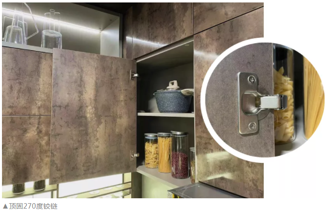 如果說板材撐起了廚柜的顏值,那么五金配件便是廚柜的靈魂了。廚柜是否安全、耐用,五金配件的選擇很關鍵。頂固以家居五金起家,多年來一直致力于向客戶提供家居五金系統整體解決方案。頂固可根據客戶個性化需求,設計定制家具的同時,開發相應的精品五金件,比如針對特定使用空間而推出不同開合角度的鉸鏈、隱藏滑軌等,使得頂固的定制廚柜在安裝時更方便快捷,在使用時更得心應手。